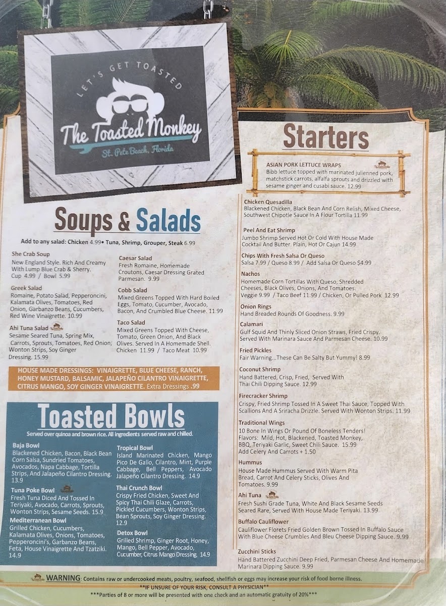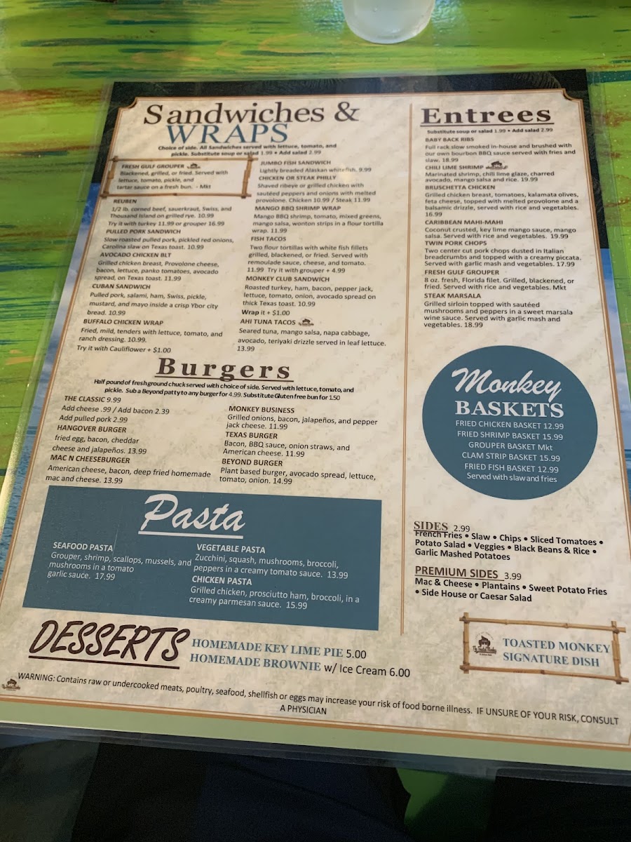 Welcome to The Toasted Monkey, a culinary gem located at 678 75th Ave, St Pete Beach, FL. This bustling eatery captures the essence of beach life with a menu brimming with hearty, flavorful dishes. Guests rave about the Pulled Pork Sandwich, featuring slow-roasted pork paired with pickled onions and Carolina slaw, all nestled in Texas toast. The Chicken or Steak Philly offers a delightful mix of grilled meats and sautéed veggies, while the Buffalo Chicken Wrap presents a spicy twist that's simply irresistible.